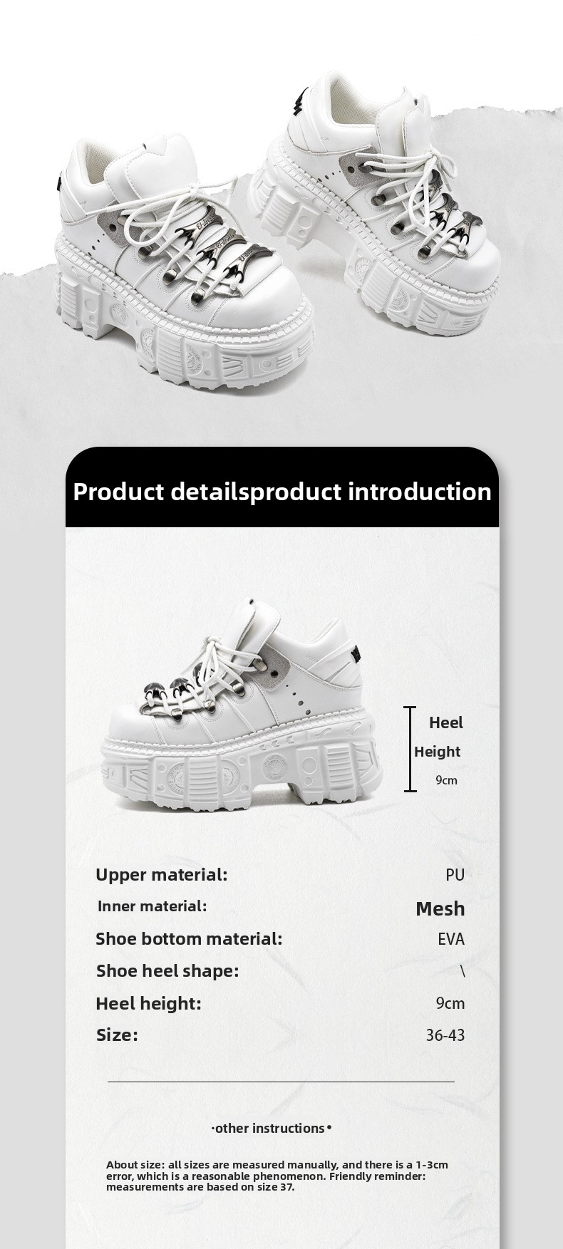Thick sole: Ultra-thick platform sole for enhanced height and comfort.