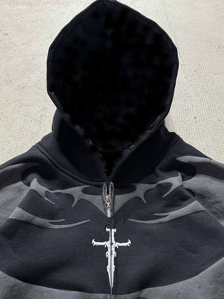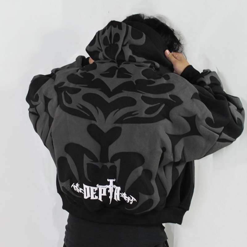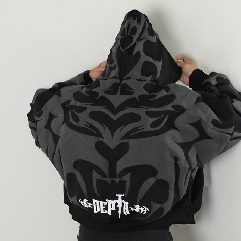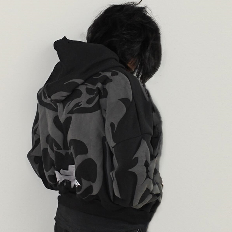 Y2K Gothic Printed Zipper Hooded Sweatshirt