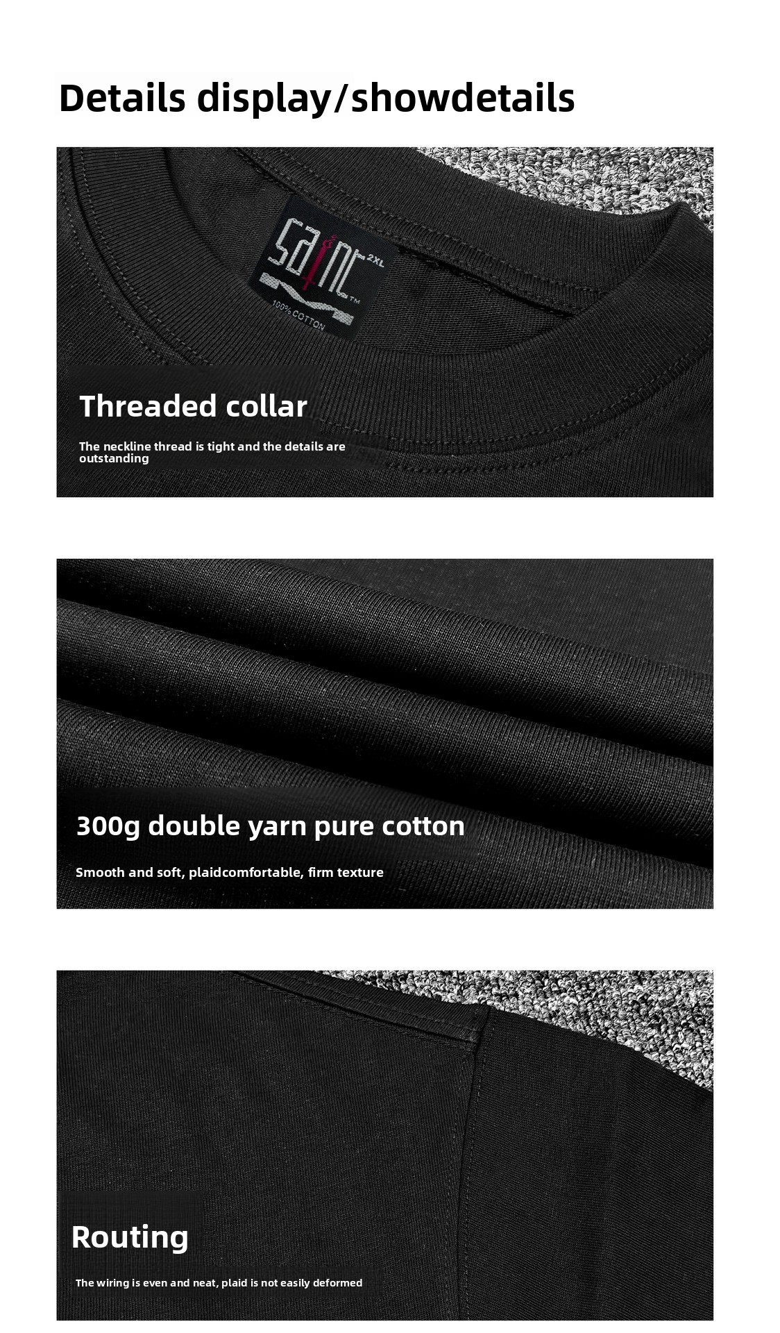 Heavyweight Cotton: 300g premium double-yarn cotton fabric for durability and comfort.